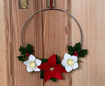 Tijdens deze workshop maakt u een kerstkrans (doorsnede ca.20cm) met prachtige bloemen van 100% wolvilt.