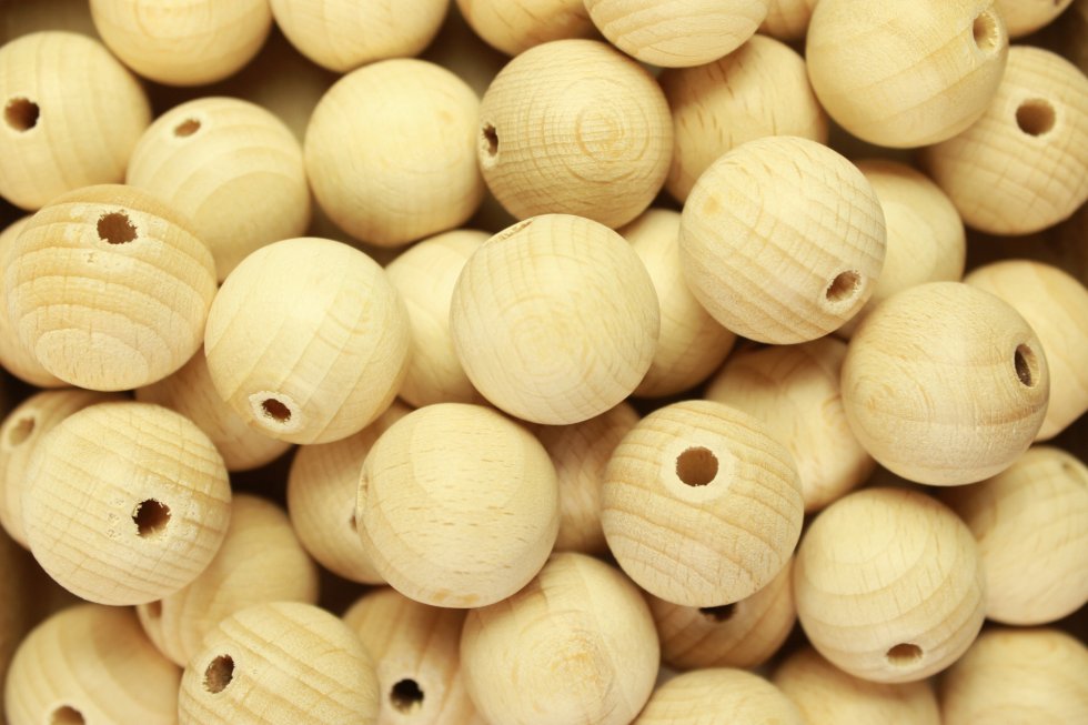 Hout, Papiermaché en Styropor <naar overzicht> Houten Kraal 20mm 50stuks Houten Kraal 20mm 50stuksOnbewerkte blanke houten ballen of houten bollen met gat