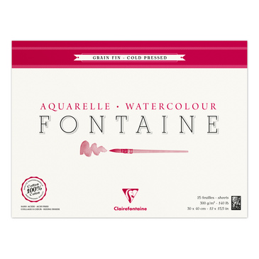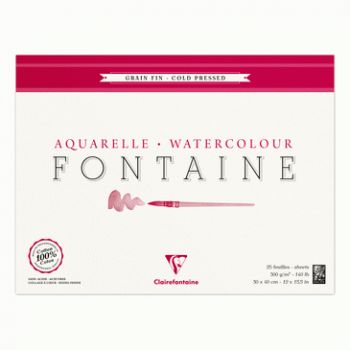 Papier en Karton - Schilderpapier ‐Bloks <naar overzicht> Aquarelpapier CF Fontaine Cotton 30x40cm 25vel Clairefontaine Aquarelpapier Fontaine 100%Katoen Grain Fin 300g.30x40cm
