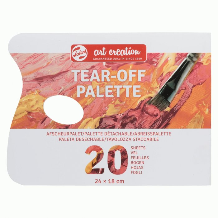 Met dit handige afscheurpalet hoeft u zich geen zorgen meer te maken over het opruimen van uw verfresten! Dit palet bevat 20 vellen olie- en watervast papier en is voorzien van een ovaal duimgat voor een betere grip.