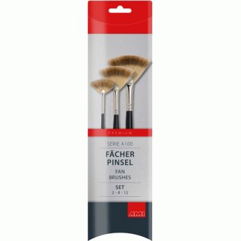 Schilderen - Penselen ‐Polyestervezel, voor Aquarel,‐Olie‐, Acryl‐ en Plakkaatverf <naar overzicht> Penselenset AMI Waaier Synthetic 3stuks Art Material International Penselenset-Waaierpenseel Synthetic Filament 2+8+12