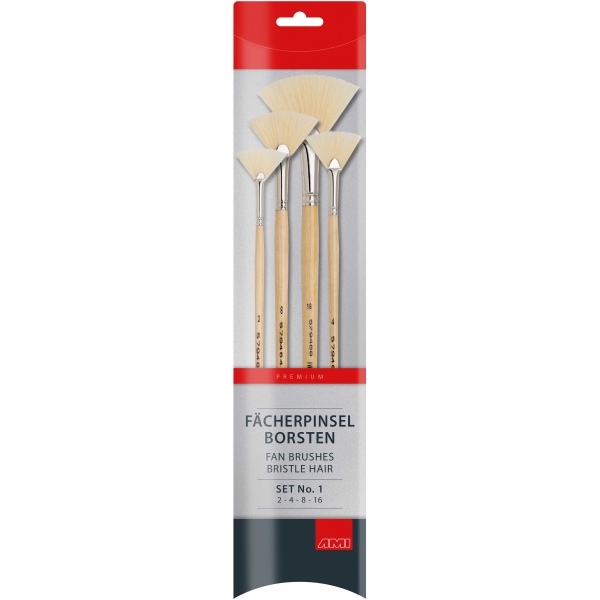 Schilderen - Penselen ‐Varkenshaar, voor Olie‐, Acryl‐ en Plakkaatverf <naar overzicht> Penselenset AMI Waaier Varkenshaar 2-4-8-16 Art Material International Penselenset Waaier Varkenshaar 2-4-8-16