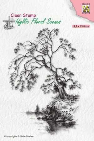 Stempelen - Clear Stamps ‐Allerlei <naar overzicht> NC Cl.St.Idyllic Floral Boom aan Water Nellies Choice Clear Stamp Idyllic Floral Scenes Tree on Waterside