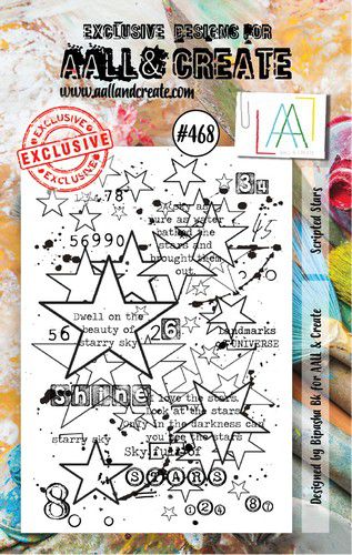 Stempelen - Clear Stamps ‐Allerlei <naar overzicht> AALL Cl.St.Scripted Stars AALL&Create Clear Stamp #468 Bipasha Bk Scripted Stars ca.7x10cm
