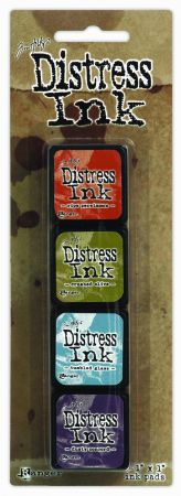 Stempelen - Stempelinkt ‐Distress Ink ‐Distress Oxide <naar overzicht> Distress Ink Mini Kit 8 Four Ink Pads Ranger Distress Ink Mini Kit Ripe Persimmon+Crushed Olive+Tumbled Glass+Dusty Concord