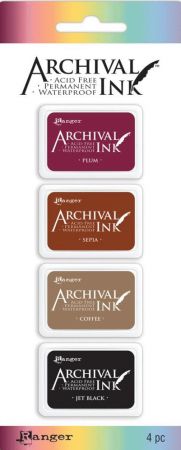 Stempelen - Stempelinkt ‐Divers <naar overzicht> Archival Ink Pad Set 2 Ranger Archival Ink Pad Set Waterproof Plum+Sepia+Coffee+Jet Black