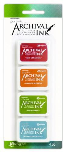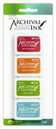 Stempelen - Stempelinkt ‐Divers <naar overzicht> Archival Ink Pad Wendy Vecchi Set 4 Ranger Archival Ink Pad Set 4 Waterproof Red Geranium - Orange Blossom - Fern Green -