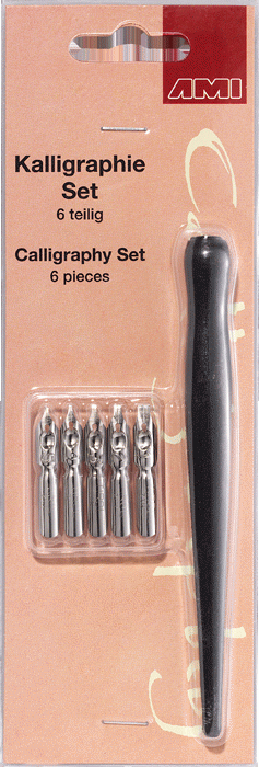 Tekenen en Kleuren - Kalligrafie <naar overzicht> Kalligrafieset A 6-delig Kalligrafieset A 6-delig, 1xhouten houder, 5xnib