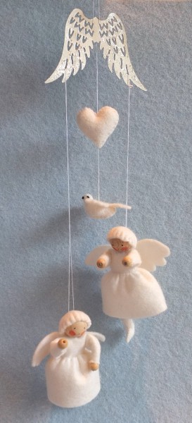 Textiel en Handwerken - DIY Poppen en Knuffels ‐Pakketten <naar overzicht> Viltpakket Pippilotta Kerst Dansende Engeltjes Atelier Pippilotta Viltpakket Kerst Dansende EngeltjesVoor de kerst is er deze leuke hanger met twee engeltjes, een hart en een duifje. Ze hangen aan een sierlijke zilverkleurige vleugel.