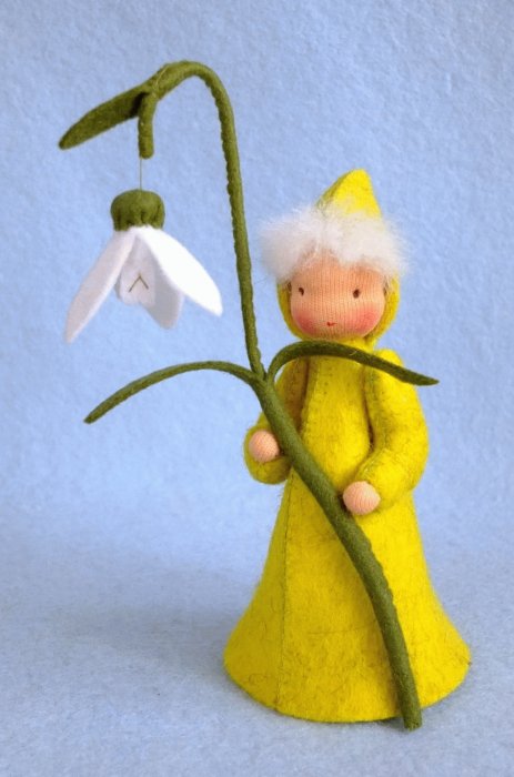 Na de koude winter is de vreugde elk jaar weer groot als het sneeuwklokje zich laat zien. Eerst de groene steeltjes en dan opeens zie je het eerste witte bloemetje verschijnen. “De lente is in aantocht”, lijken ze te roepen. “Ruim de tuin maar op en maak de stoelen schoon want binnenkort kun je weer buiten wonen”. Ze is gemaakt van dik fresco vilt en is niet moeilijk om te maken