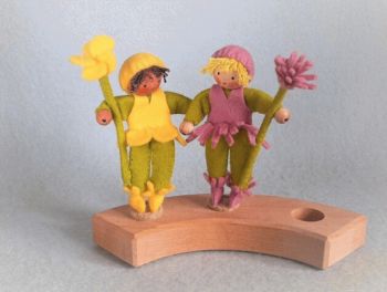 Deze twee bloemen kent bijna iedereen wel. Ze zijn 8cm groot en niet moeilijk om te maken. Naar eigen inzicht kun je de haren en de kleur van het hout aanpassen.