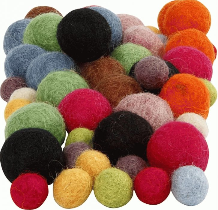 Textiel en Handwerken - Poppen en Knuffels ‐Materiaal naar overzicht> Wolballen 10+20mm Ass.ca.52stuks Wolballen Viltkralen 10+20mm Assortie 52stuks