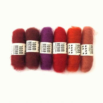 Textiel en Handwerken - Viltwol + Benodigdheden <naar overzicht> Bheda Wol Ass.Roodtinten 6xca.2gram Bheda Wol Assortiment Roodtinten 6xca.2gram