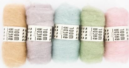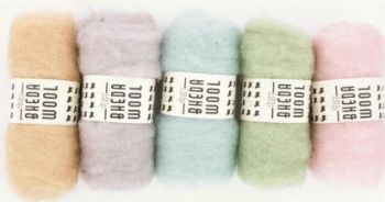 Textiel en Handwerken - Viltwol + Benodigdheden <naar overzicht> Bheda Wol Ass.Pasteltinten 5xca.25gram Bheda Wol Assortiment Pasteltinten Pastel Colours 5xca.25gramBhedaWol is een heerlijke gemixte viltwol. Het is ideaal voor zowel droog als natvilten.